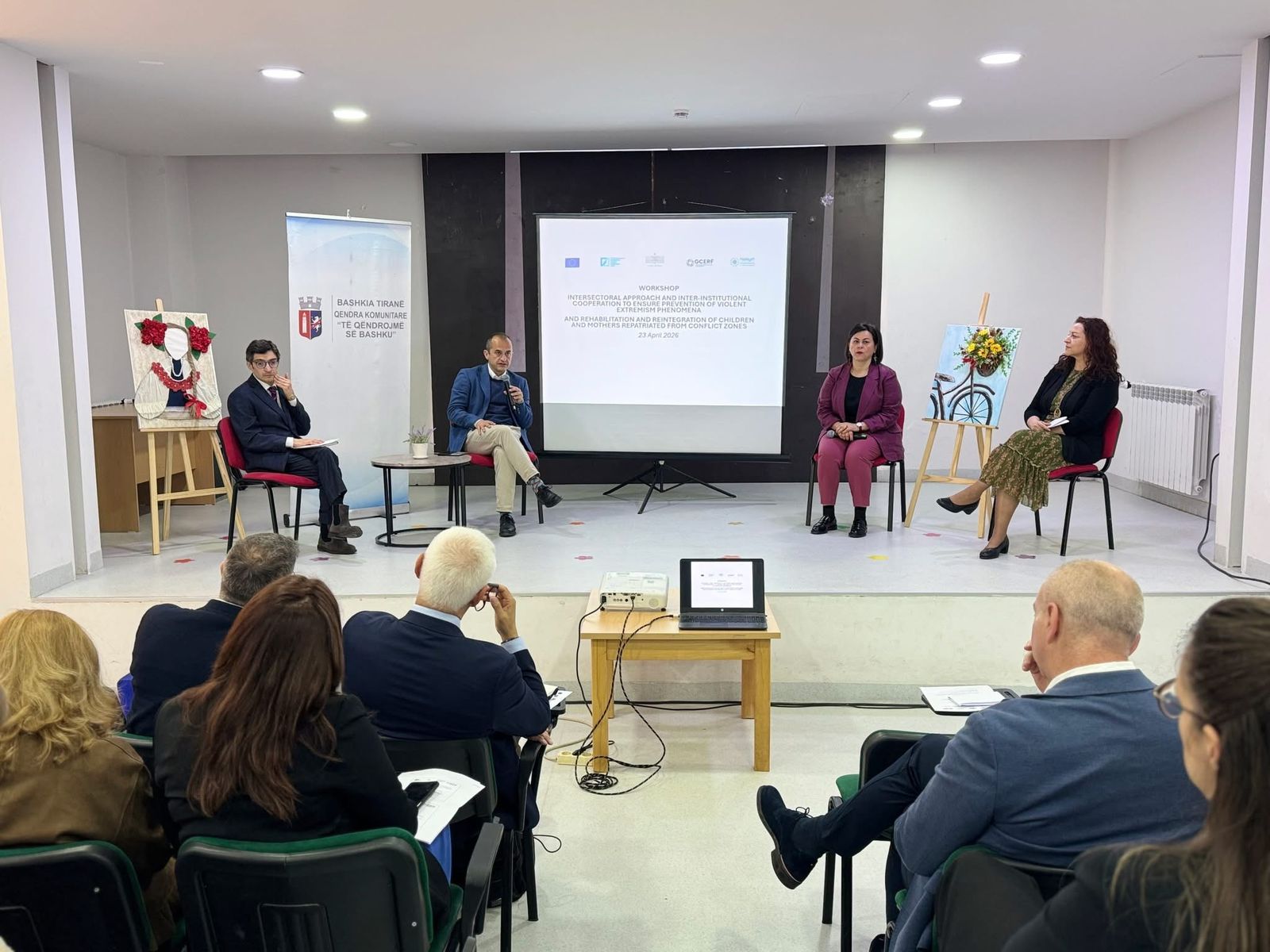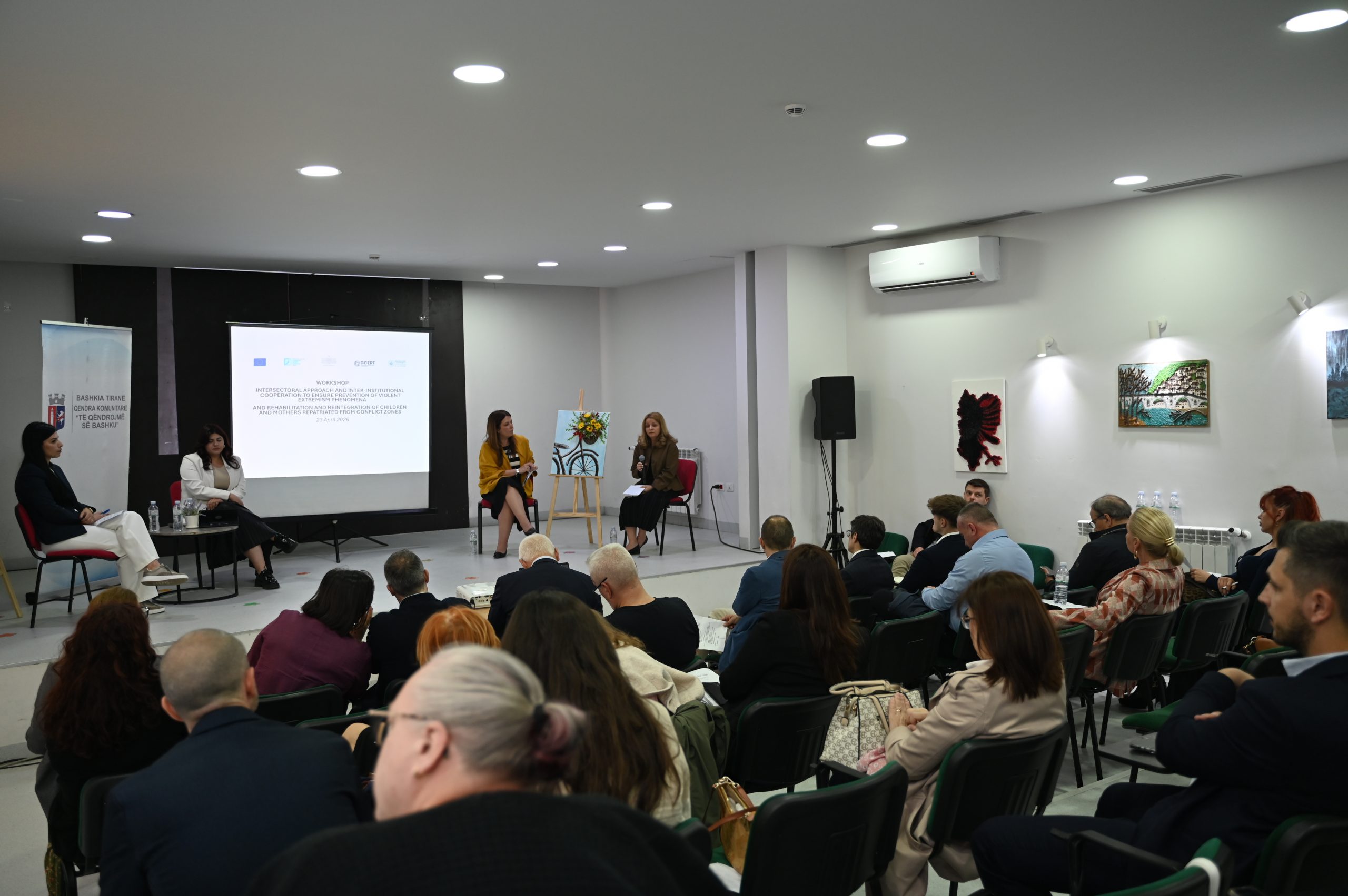 Qendra e Koordinimit kundër Ekstremizmit të Dhunshëm (QKEDH) organizoi sot një aktivitet mbi qasjen ndërsektoriale dhe bashkëpunimin ndërinstitucional për parandalimin e ekstremizmit të dhunshëm, si dhe rehabilitimin dhe riintegrimin e fëmijëve dhe nënave të riatdhesuara nga zonat e konfliktit. Aktiviteti u zhvillua me mbështetjen e Bashkimit Evropian, në bashkëpunim me GCERF dhe Hedayah, në Qendrën Multifunksionale “Të Qëndrojmë së Bashku” në Kombinat.